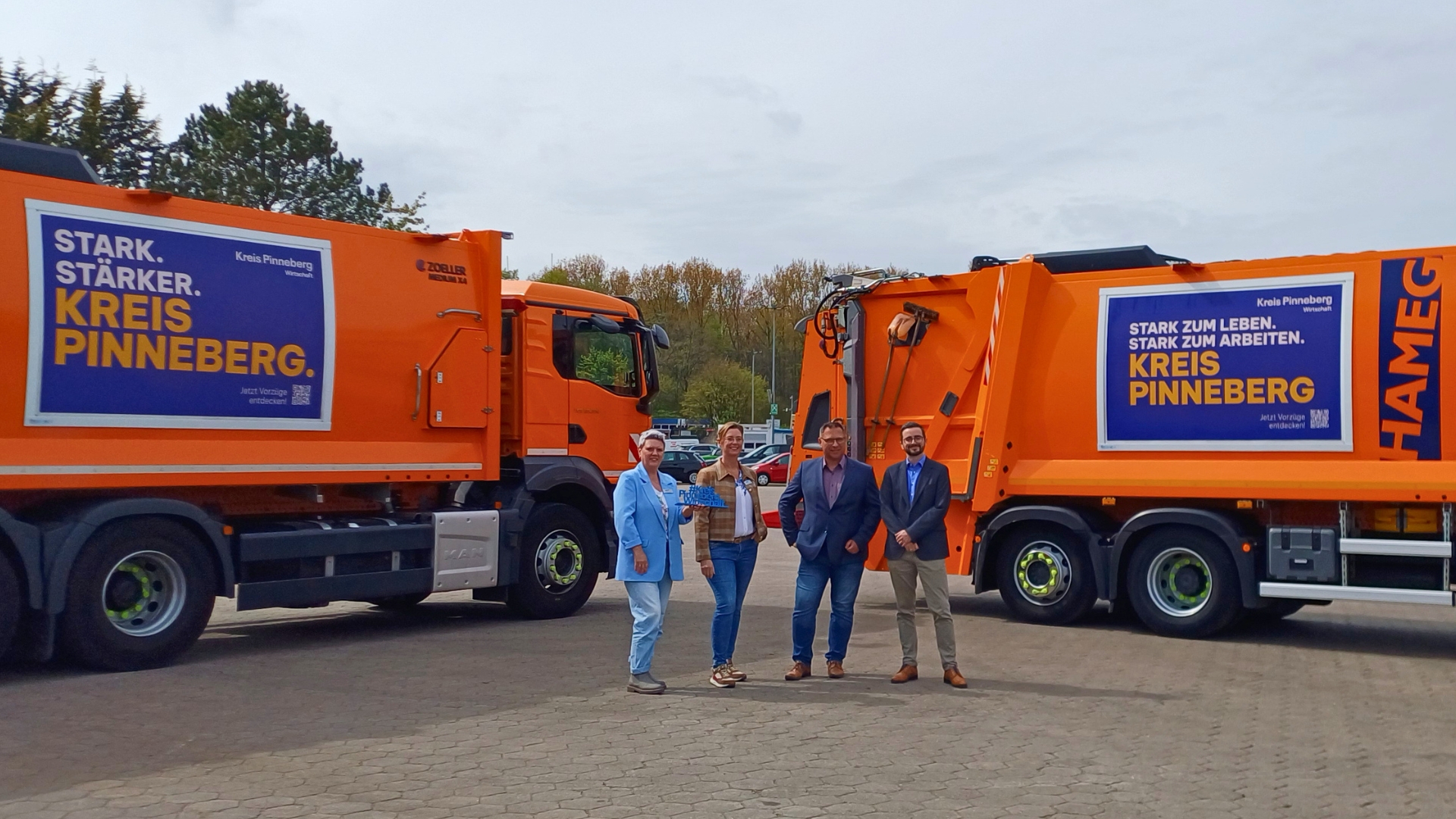 Mit einer neuen, aufmerksamkeitsstarken Aktion bringt die Kreis Pinneberg Wirtschaft ihre Standortkommunikation direkt in den Alltag der Menschen: Ab sofort sind zwei Müllfahrzeuge der GAB Umweltservice GmbH mit großflächigen Motiven im gesamten Kreisgebiet unterwegs.