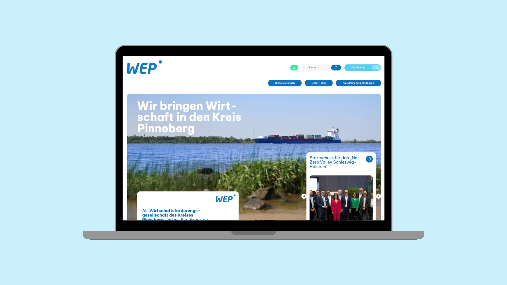 Die Landingpage der WEP wurde gezielt weiterentwickelt, um die Leistungen und Angebote der Wirtschaftsförderung noch klarer und strukturierter darzustellen.